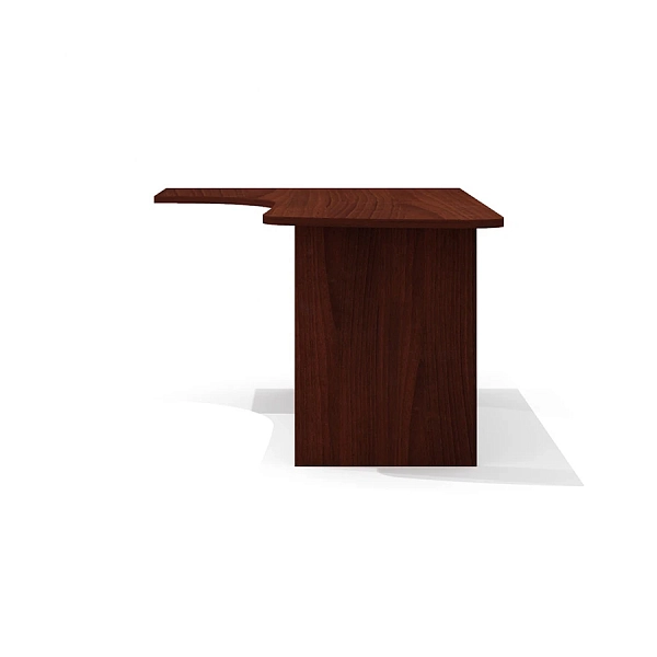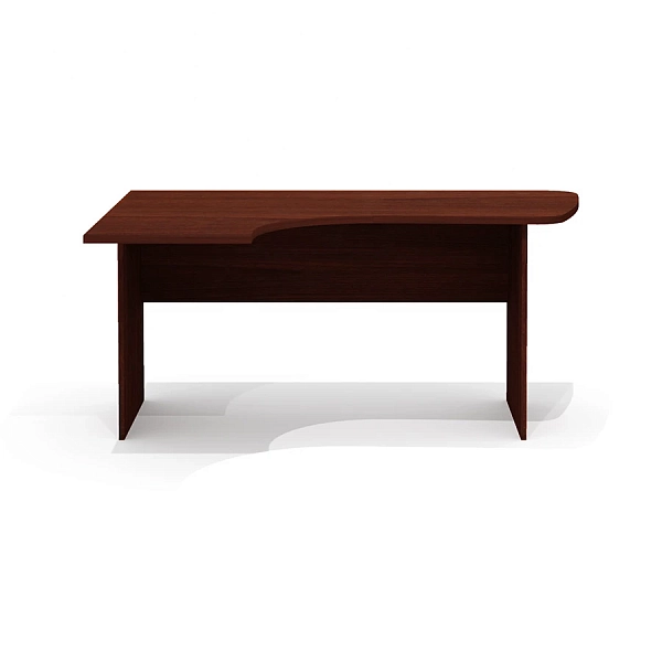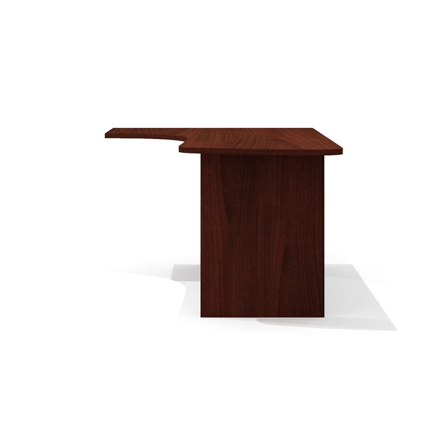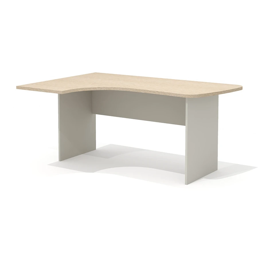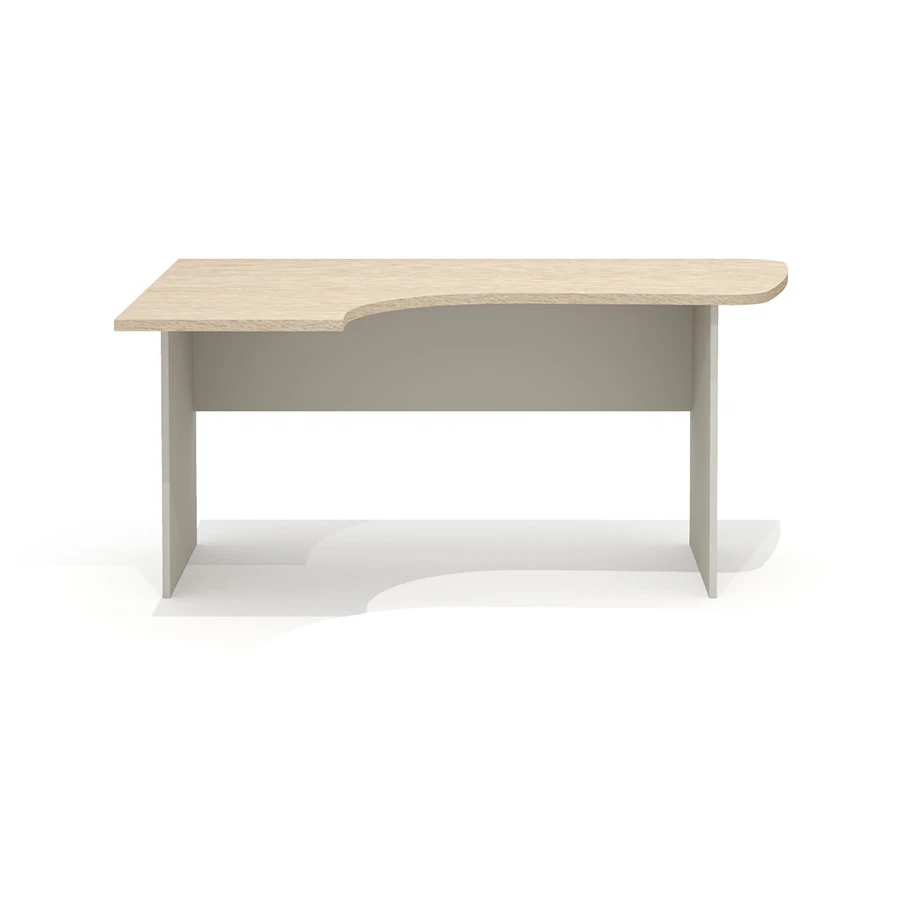 Столешница имеет интегральную эргономичную форму с криволинейной рабочей и боковой сторонами. Радиус скругления рабочей и узкой боковой зон стола – плавный переменный 100, 360, 1820 и 7560 мм. Интегральный переход и криволинейный вырез столешницы выполнен исключительно механическим способом на высокоточном оборудовании. Категорически не допускаются ручная обработка материала, наличие неровностей, сколов, царапин и прочих повреждений материала.