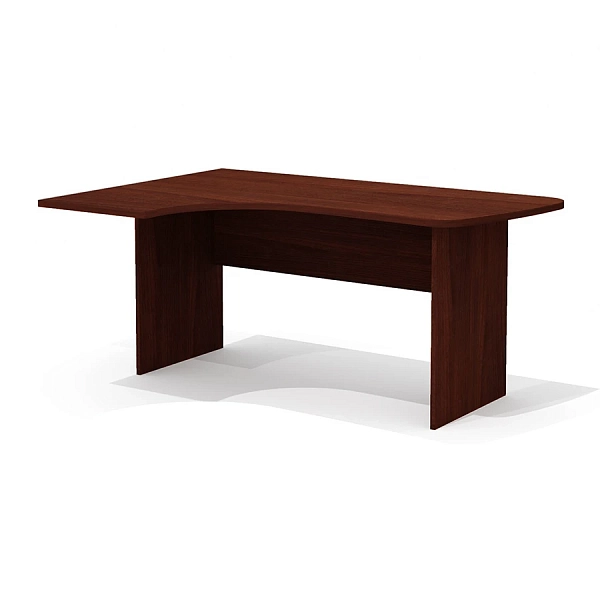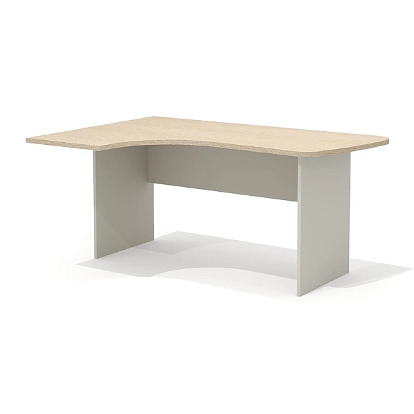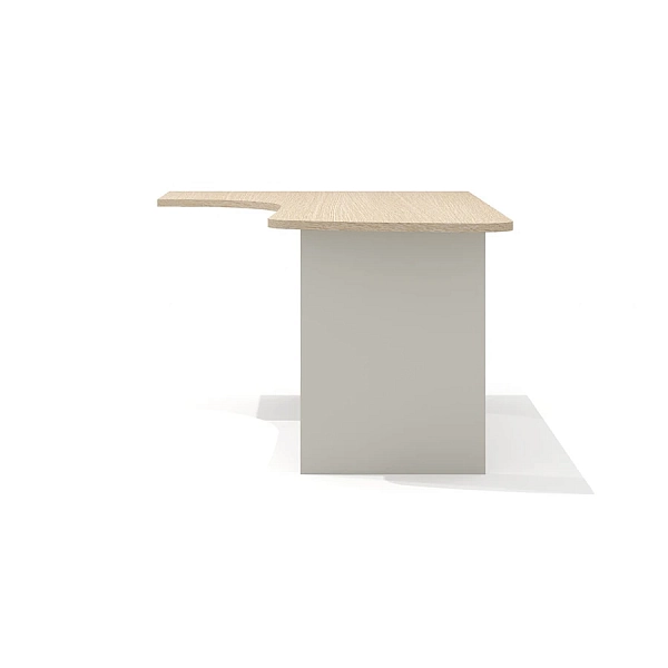 Конфигурация и размеры столешницы позволяют доукомплектовать стол приставными тумбой с глубиной топа 504 мм (со стороны широкой части) и/или эргономичной приставкой (со стороны узкой части).
