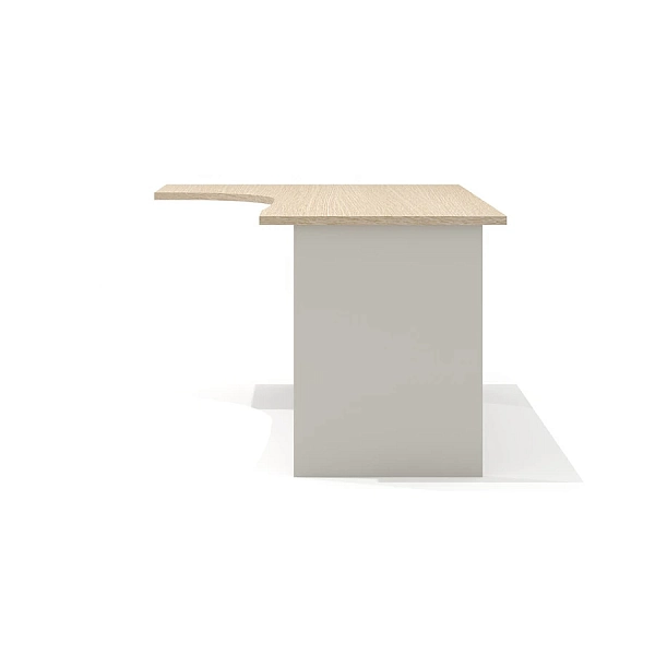 Столешница имеет интегральную форму с криволинейной рабочей стороной. Радиус скругления рабочей зоны стола – плавный переменный 360, 1000 и 7560 мм. Интегральный переход и криволинейный вырез столешницы выполнен исключительно механическим способом на высокоточном оборудовании. Категорически не допускаются ручная обработка материала, наличие неровностей, сколов, царапин и прочих повреждений материала.