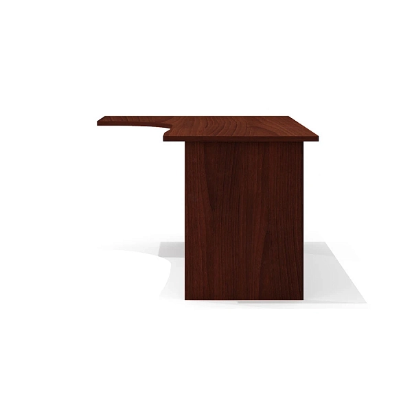 Конфигурация и размеры столешницы позволяют доукомплектовать стол приставной тумбой с глубиной топа 504 мм (со стороны широкой части) и/или приставными элементами (приставки, тумбы) с глубиной топа 704 мм (со стороны узкой части).