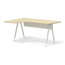 Глубина столешницы – 676 мм (самая узкая часть) с плавным переходом до 1104 мм (широкая левая часть), длина – 1604 мм. Ширина опор – 540 мм. Высота царги стола – 360 мм, длина – 1500 мм. Царга утоплена вглубь опор на 40 мм. Высота стола в сборе – 750 мм.