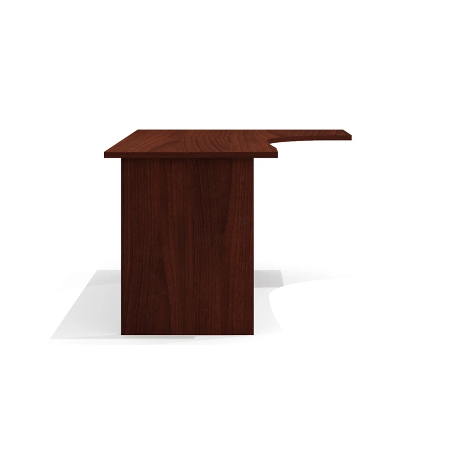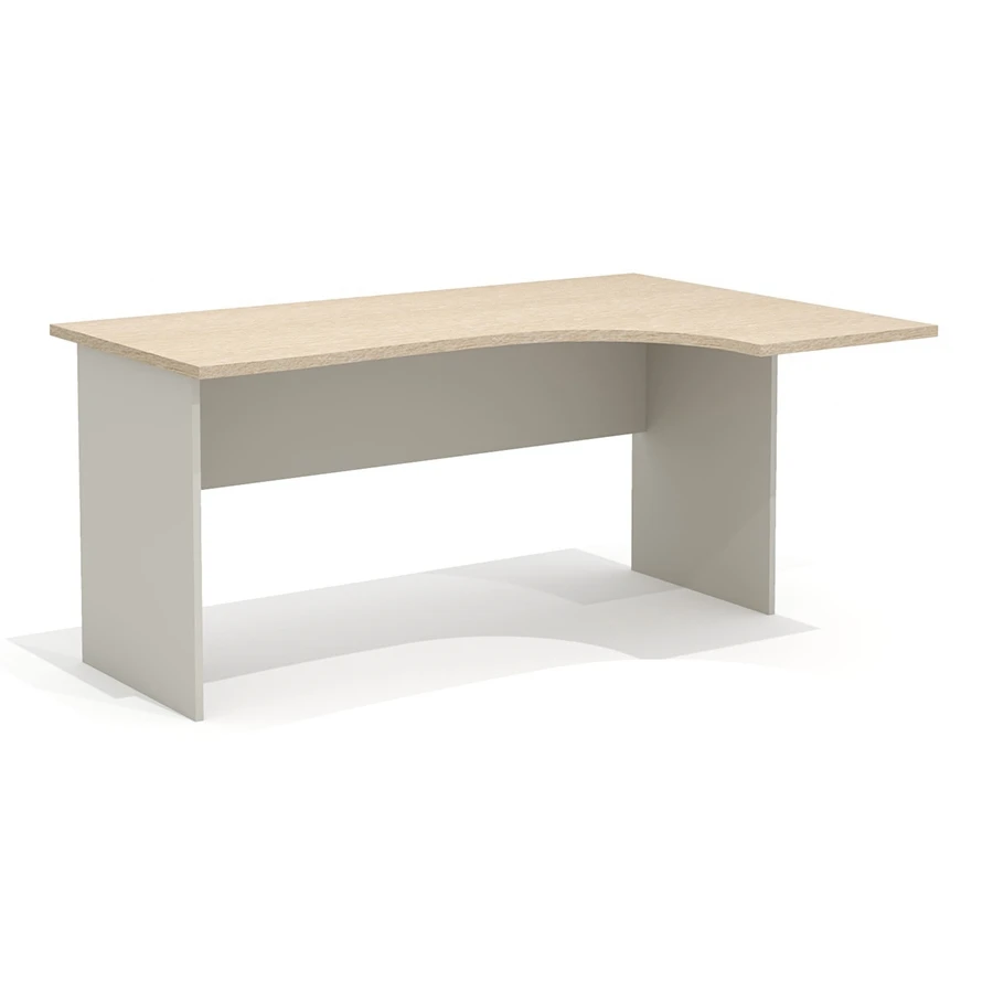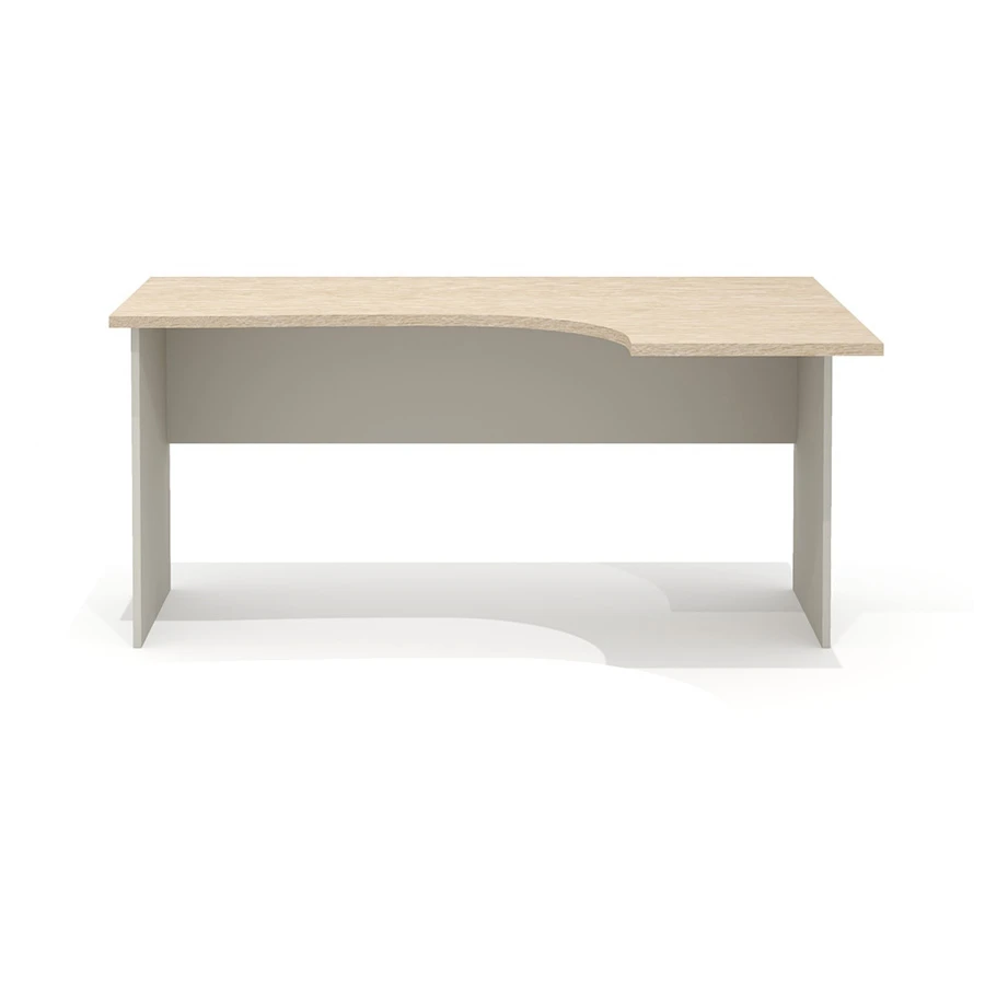 Столешница имеет интегральную форму с криволинейной рабочей стороной. Радиус скругления рабочей зоны стола – плавный переменный 360, 1000 и 7560 мм. Интегральный переход и криволинейный вырез столешницы выполнен исключительно механическим способом на высокоточном оборудовании. Категорически не допускаются ручная обработка материала, наличие неровностей, сколов, царапин и прочих повреждений материала.
