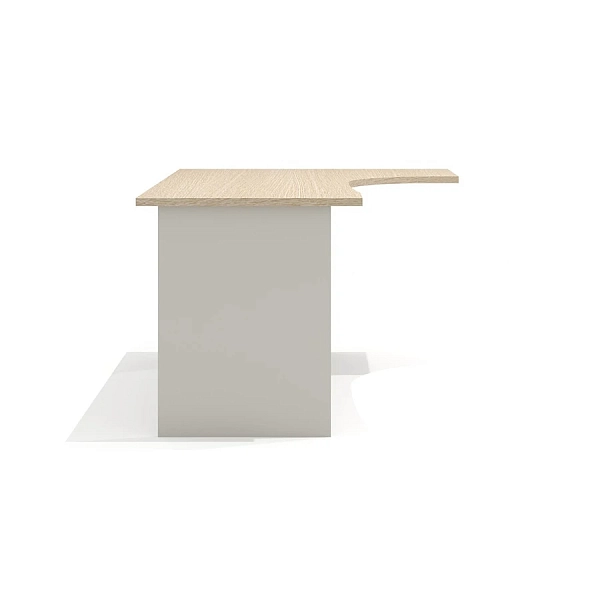 Конфигурация и размеры столешницы позволяют доукомплектовать стол приставной тумбой с глубиной топа 504 мм (со стороны широкой части) и/или приставными элементами (приставки, тумбы) с глубиной топа 704 мм (со стороны узкой части).
