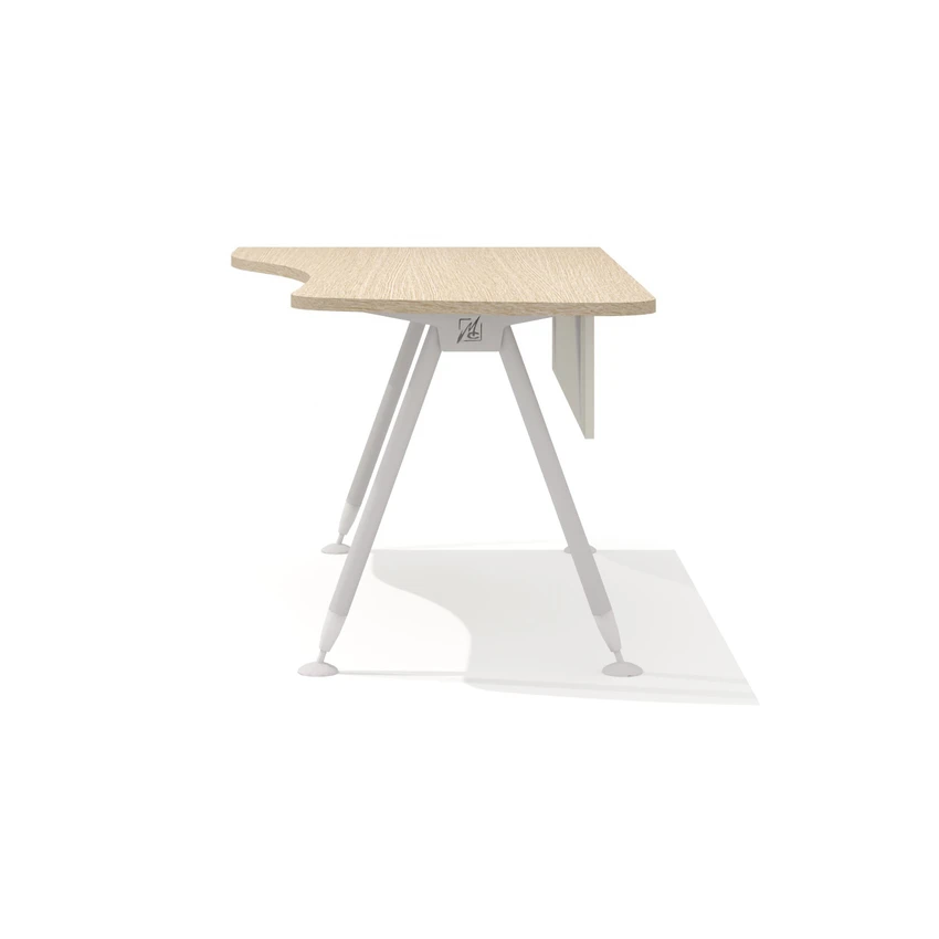 Столешница имеет эргономичную форму с криволинейной рабочей и боковой сторонами. Радиус скругления рабочей и узкой боковой зон стола – плавный переменный 100, 500, 1000, 1820 и 7560 мм. Криволинейный переход столешницы выполнен исключительно механическим способом на высокоточном оборудовании. Категорически не допускаются ручная обработка материала, наличие неровностей, сколов, царапин и прочих повреждений материала.