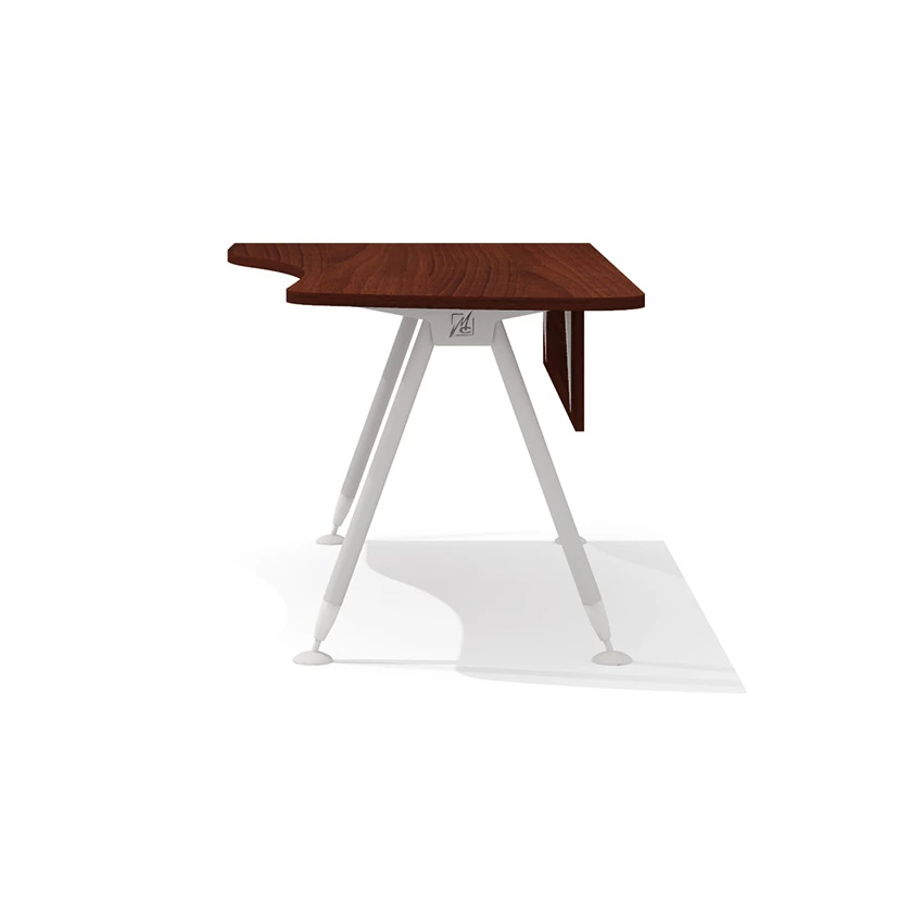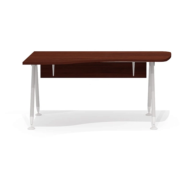 Конфигурация и размеры столешницы позволяют доукомплектовать стол приставной тумбой с криволинейным топом глубиной 560 мм (со стороны широкой части) и/или эргономичной приставкой (со стороны узкой части).
