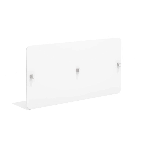 Для крепления перегородки к столешнице стола предусмотрены входящие в комплект три кронштейна с зажимными элементами. Кронштейны выполнены из металла толщиной не менее 3 мм с полимерным покрытием.