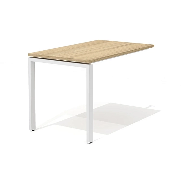 Разборный металлический каркас состоит из опоры и двух металлических балок. Метод сборки каркаса – болтовое соединение. Балки выполнены из трубы прямоугольного сечения 20х40 мм и каждая имеет не менее трех кронштейнов крепления к столешницам приставки и стола. Кронштейны выступают над поверхностью балок, благодаря чему столешница приставки устанавливается выше уровня опоры на 15 мм. Длина балок – 1254 мм. Опора каркаса выполнена из трубы прямоугольного сечения 30х60 мм в форме буквы «П»: два вертикальных отрезка сверху соединены горизонтальным отрезком. Длина опоры – 698 мм, ширина – 60 мм, высота (без учета регулировочного элемента в основании) – 694 мм, высота (с учетом регулировочного элемента) – 710 мм. Металлический каркас имеет полимерное покрытие цвета «белый матовый».