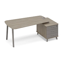 Конфигурация и размеры столешницы позволяют доукомплектовать стол приставной тумбой с глубиной топа 500 мм (со стороны широкой части) и/или приставными элементами (приставки, тумбы) с глубиной топа 700 мм (со стороны узкой части).