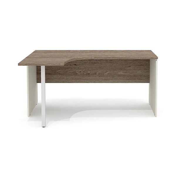 Столешница имеет интегральную форму с криволинейной рабочей стороной. Радиус скругления рабочей зоны стола – плавный переменный 300 и 750 мм. Интегральный переход и криволинейный вырез столешницы выполнен исключительно механическим способом на высокоточном оборудовании. Категорически не допускаются ручная обработка материала, наличие неровностей, сколов, царапин и прочих повреждений материала.