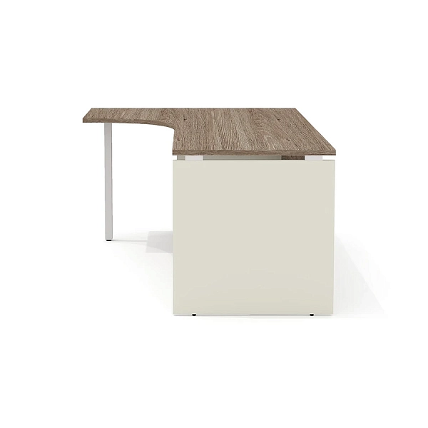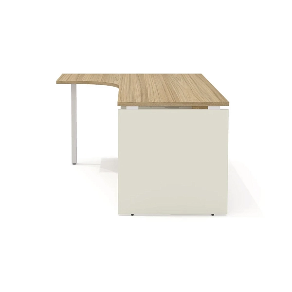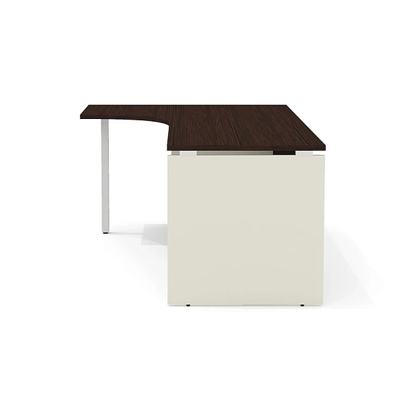 Конфигурация и размеры столешницы позволяют доукомплектовать стол приставной тумбой с глубиной топа 500 мм (со стороны широкой части) и/или приставными элементами (приставки, тумбы) с глубиной топа 700 мм (со стороны узкой части).