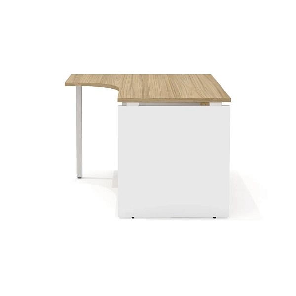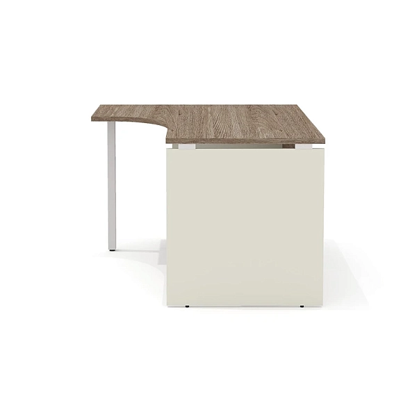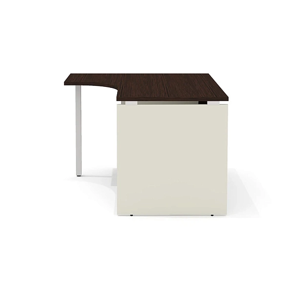 Конфигурация и размеры столешницы позволяют доукомплектовать стол приставной тумбой с глубиной топа 500 мм (со стороны широкой части) и/или приставными элементами (приставки, тумбы) с глубиной топа 700 мм (со стороны узкой части).