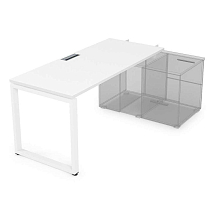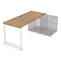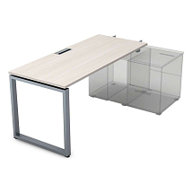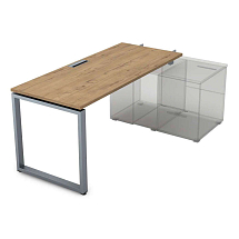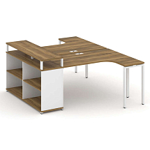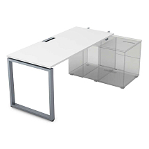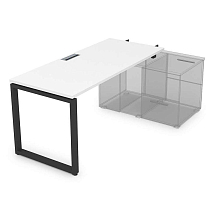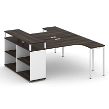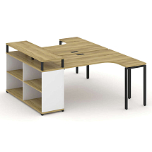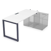 Конфигурация и размеры столешницы позволяют доукомплектовать стол приставной тумбой с глубиной топа 500 мм (со стороны широкой части) и/или приставными элементами (приставки, тумбы) с глубиной топа 700 мм (со стороны узкой части).