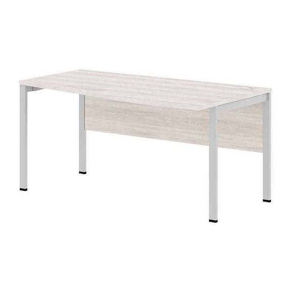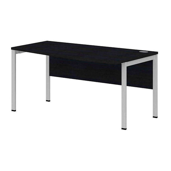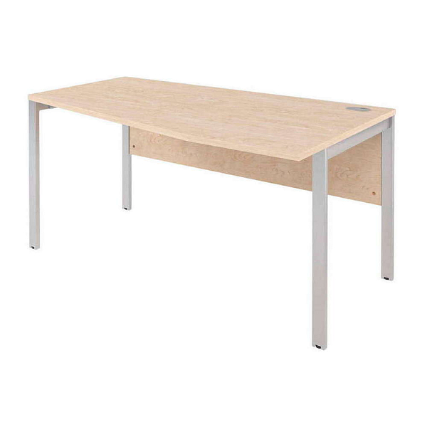 Столешница из ЛДСП т.25мм., кромка ПВХ т. 2мм., фронтальная панель из ЛДСП т. 18 мм., опоры - металлокаркас из трубы 50х25, цвет серебро. Стол комплектуется одной заглушкой.