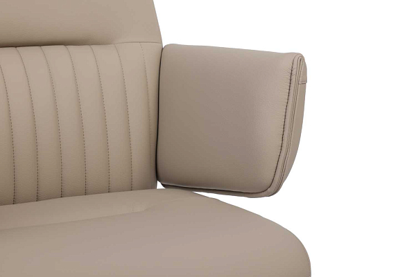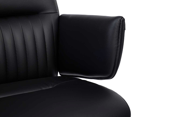Цельные подлокотники имеют монолитную конструкцию и полностью обтянуты той же экокожей, что и основная часть кресла. Это создает ощущение завершенности дизайна и премиального качества, без использования дешевых пластиковых или металлических накладок. Отделка также включает качественную и ровную прострочку по контуру спинки и сиденья, что подчеркивает форму кресла и предотвращает растяжение материала.