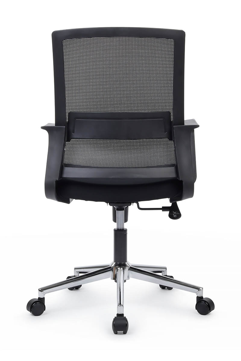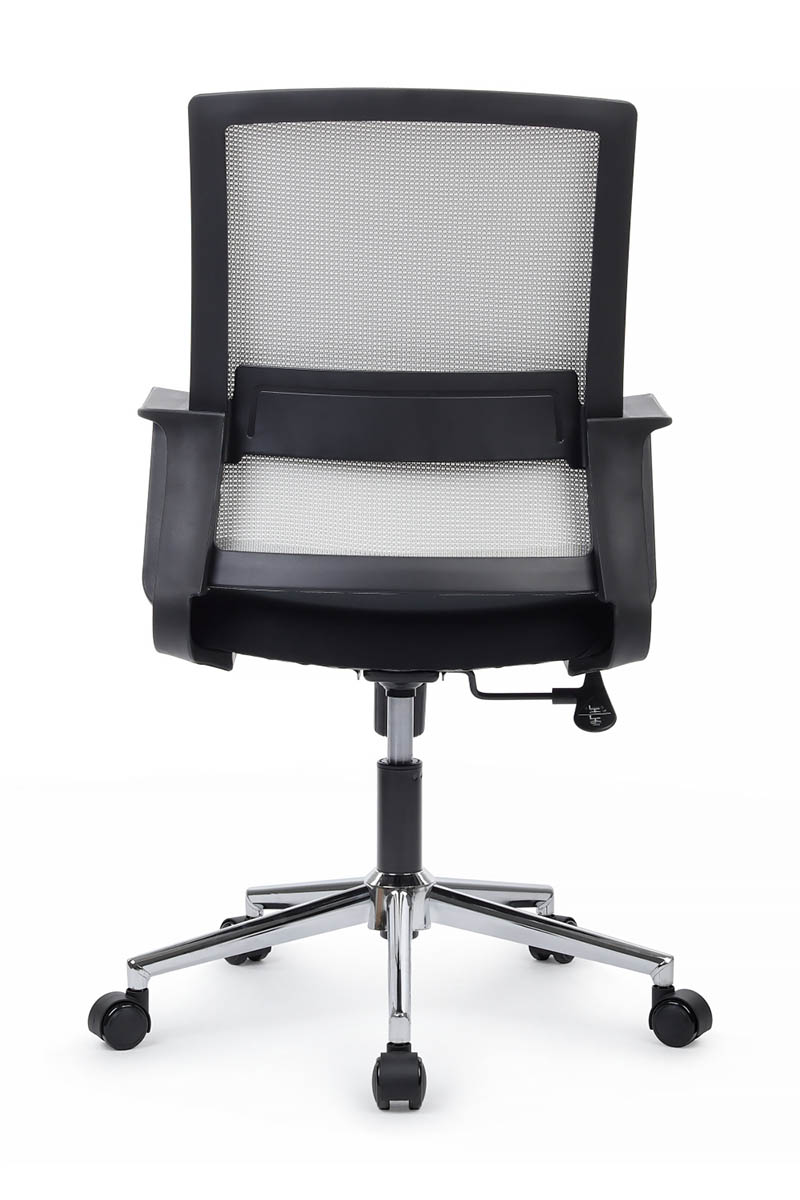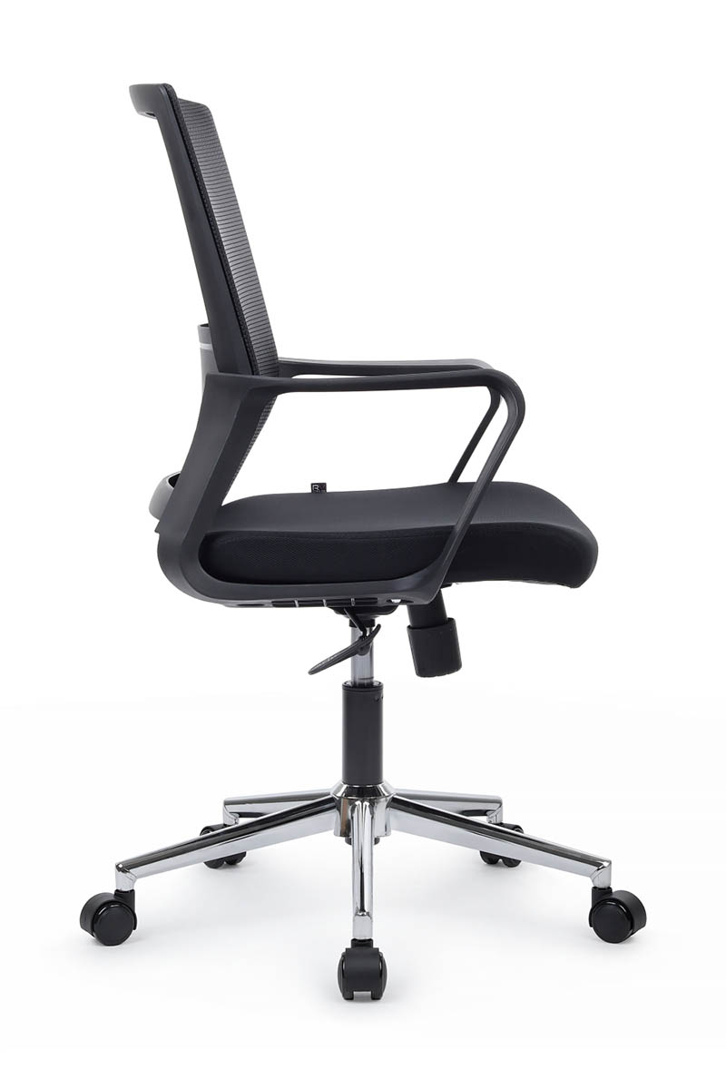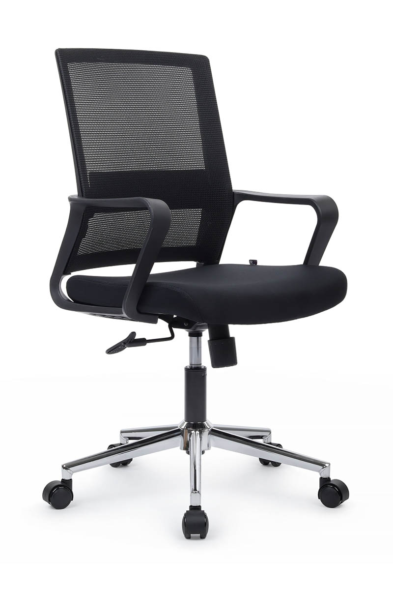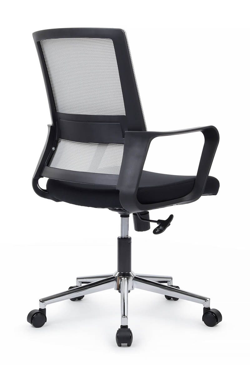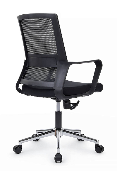 Кресло оснащено механизмом качания с фиксацией в одном положении, что позволяет легко регулировать угол наклона и находить наиболее удобную позицию для работы. Хромированная крестовина придает креслу стильный вид и обеспечивает устойчивость, а прорезиненные ролики позволяют легко перемещать кресло по офису, не повреждая пол.